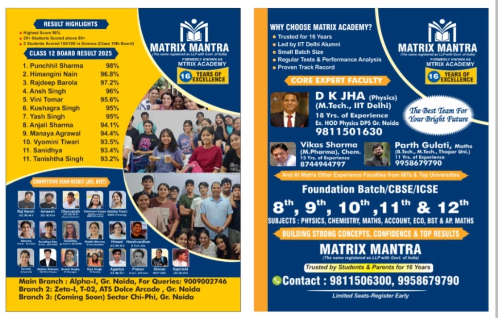 Book a free demo class and see why Matrix Mantra is the preferred choice of hundreds of families in Greater Noida.